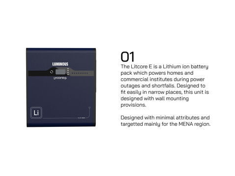 The Litcore Li-ion battery packs are designed to cater to the power shortages in domestic spaces for the MENA region. The Simple form factor and UI is for people from with varied nationality and usability.